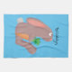 Cute bunny rabbit sitting with carrot cartoon kitchen towel