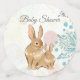 The spring time baby shower table confetti features a mom and baby bunny rabbit. They are sitting among soft early spring coloured flowers.