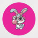 A charming cartoon bunny wearing oversized round glasses, a polka-dot bow, and blowing a pink bubble gum bubble.