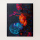 Cute Butterfly on Psychedelic Poppy in Moonlight Jigsaw Puzzle