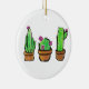 Three cute cacti with pink flowers in little terra cotta pots- a fun south western design!