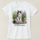 This white, short-sleeve crew neck t-shirt showcases a charming Calico cat and catnip design. The cat is depicted sitting atop three gardening books titled "how to grow catnip," with potted, blooming catnip plants in the background. Adorned with a floral apron, this digitally-watercolored design, created using DALL-E3 and designed by Susang6, is perfect for any cat enthusiast. This tee makes a wonderful purchase for yourself or as a gift.