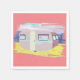Cute pink camper on the beach digital art drawing for travel life lovers. Custom background colour.