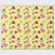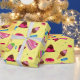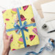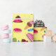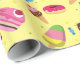 Cute and girly wrapping paper featuring a candy themed pattern on yellow background