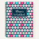 This adorable personalized recipe notebook features a dots pattern, with cute sweet things on some of the dots - cupcakes, candies, cherries, and lollipops. Simply customize it with the little girl's name of your choice for an adorable, unique gift! Great idea for the young baker or chef! The background colour can be customized to a different colour, if desired (shown in dark navy blue).