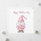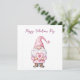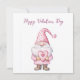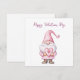 cute card with a cartoon pink gnome in love