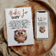 Whooo’s ready to celebrate? This adorable baby shower invitation features a sweet caricature owl perched on a branch, perfect for welcoming a little baby boy! With soft blue tones and charming details, it’s a hoot of a way to invite friends and family to your special day. Personalize with your event details and make it uniquely yours. Ideal for woodland, animal, or nature-themed baby showers. Order today and get ready to celebrate the little night owl on the way!