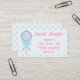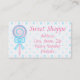Une jolie pop rose pastel et bleue avec des rubans bleus attachés à un arc orne ce carte de visite. Le arrière - plan derrière la sucette est constitué de rubans bleus et roses attachés aux arcs. Le même arrière - plan apparaît au verso de la carte. Il pourrait faire un bon carte de visite pour une confiserie ou une boutique de vêtements pour enfants. Modifiez le texte pour dire ce que vous voulez.