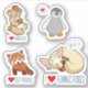 This is a sticker collection of cute cartoon animals: a hamster with strawberry, cute baby penguin with heart, I love red pandas and a sleepig fennec fox with the text "I love fennec foxes". The fennec fox is sleeping with a red panda plush. Aren't they just cute? Enjoy! ♡