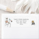 Hand drawn animals - raccoon, flamingo and beaver adorn your return address labels for your holiday greetings.