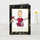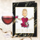 Cute Cartoon Black Gold Sparkle Red Wine Birthday Card