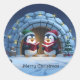 Cute Cartoon Caroling Penguins Classic Round Sticker