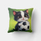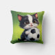 Cute Cartoon Cat Holding Soccer Ball Throw Pillow