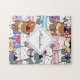 Cute Cartoon Cat Kitten Pattern Monogram Girl Name Jigsaw Puzzle