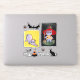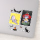 Here's a grouping of cute and vibrant cartoon Halloween cat stickers! Designs feature a yellow cat stretching, an adorable kitty holding a broom and dressed as a witch, a black cat silhouette, two bats, two paw prints, and a "Happy Halloween" phrase with a witch's hat.