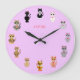 Cute cartoon cats on pinkish violet Wall Clock. Cats are like cations! Cation text can be personalized.