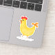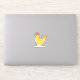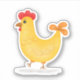 This sticker features an original painting of a cute chicken in yellow, red, orange and brown.