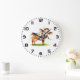 Cute Cartoon Dairy Cow with Flower and Grass Large Clock