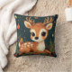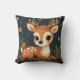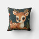 Cute Cartoon Deer in Festive Wreath Throw Pillow