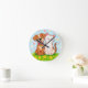 Cute Cartoon Dog and Cat Sitting Together Round Clock