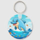 Cute Cartoon Dolphin Splashing in Water Keychain