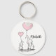 Two cute cartoon elephants holding pink heart shaped balloons in their trunks. White background. Tempate for Your name, black letters.