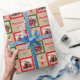 Cute Cartoon Elf With Name Initial / Family Monogram On A Faux Kraft Background, 2 Photo Collage, Merry Christmas Greeting, Gift Wrap / Wrapping Paper.