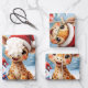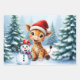 Cute Cartoon Giraffe with Santa Hat & Snowman Wrapping Paper Sheet