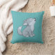 Cute Cartoon Howling Wolf Pup Green Throw Pillow