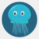 Cute Cartoon Jellyfish In Blue Ocean Classic Round Sticker