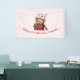 Birthday banner with a cute drawing of a little kitten poking its head out of a gift box.