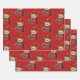 Wrapping paper sheets with a cute drawing of a little kitten poking its head out of a gift box.