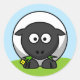 Simple, adorable cartoon sheep. The cute little lamb is chewing on a yellow flower.