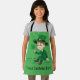 Apron with an Illustration of a cute smiling leprechaun wearing a green suit, a top hat while holding a shamrock leaf