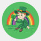 Cute cartoon leprechaun with shamrock and rainbow classic round sticker