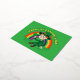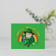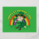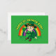 Cute cartoon leprechaun with shamrock and rainbow foil holiday postcard