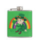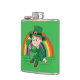Cute cartoon leprechaun with shamrock and rainbow hip flask