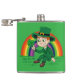 Flask with an Illustration of a cute smiling leprechaun wearing a green suit, a top hat while holding a shamrock leaf, with a colourful rainbow in the background