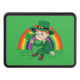Cute cartoon leprechaun with shamrock and rainbow trailer hitch cover