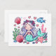 Cute cartoon mermaid in an under the seat scene featuring shells, coral and fish. Colourful, bright and fun.