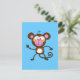 Cute Cartoon Monkey on Blue Postcard