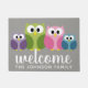 Cute Cartoon Owl Family and Custom Name Doormat