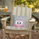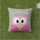 Cute Cartoon Owl - Pink and Grey Custom Name Outdoor Pillow