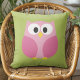 Cute Cartoon Owl - Pink and Lime Green Throw Pillow