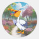Cute Cartoon Pelican with Fish, sea bird Classic Round Sticker