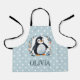 Personalized cute funny penguin small apron design – a heartwarming blend of adorable charm and floral elegance. This cute cartoon penguin is surrounded by whimsical flowers on a soothing polka dots background. It's a delightful fusion of cuteness and nature, perfect for bringing joy to your home.