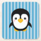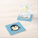 Cute Cartoon Penguin Design Blue Stripes Pattern Square Paper Coaster