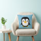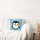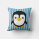 Cute Cartoon Penguin Design Blue Stripes Pattern Throw Pillow