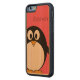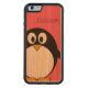 Cute Cartoon Penguin Illustration with Custom Name Carved Wood iPhone Case