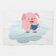 Cute Cartoon Pig Reader on Cloud Kitchen Towel